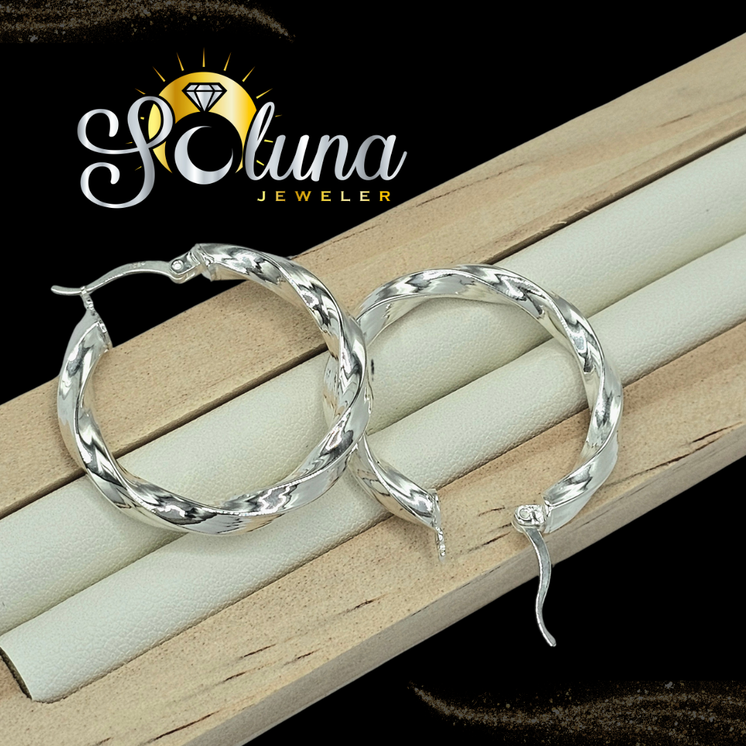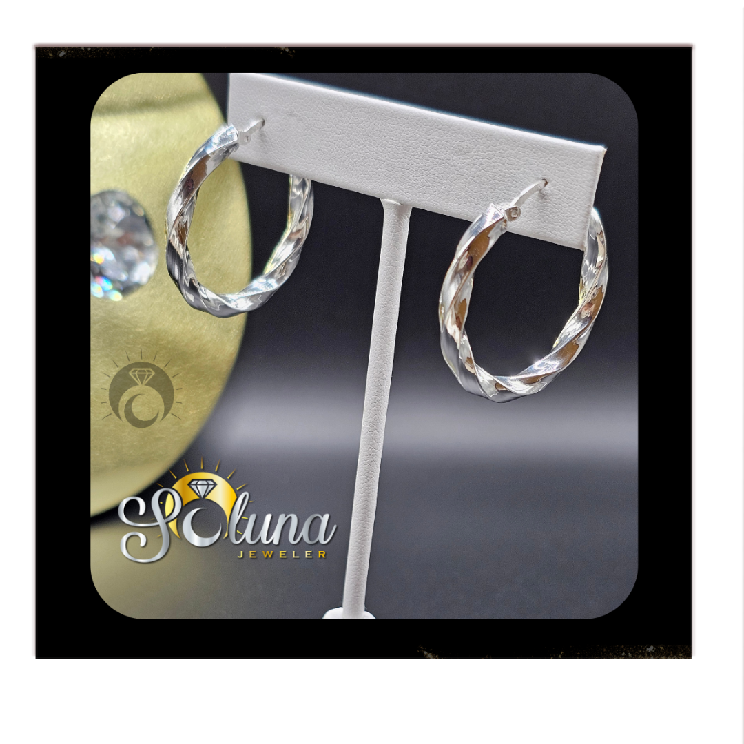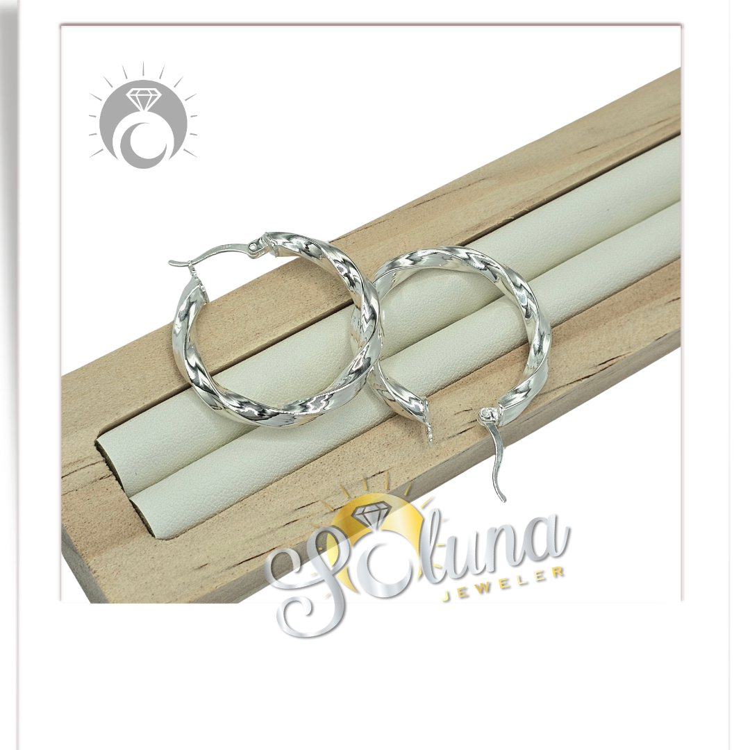 Arete con un diseño torzal, tiene un diseño de acabado liso elegante y tradicional.