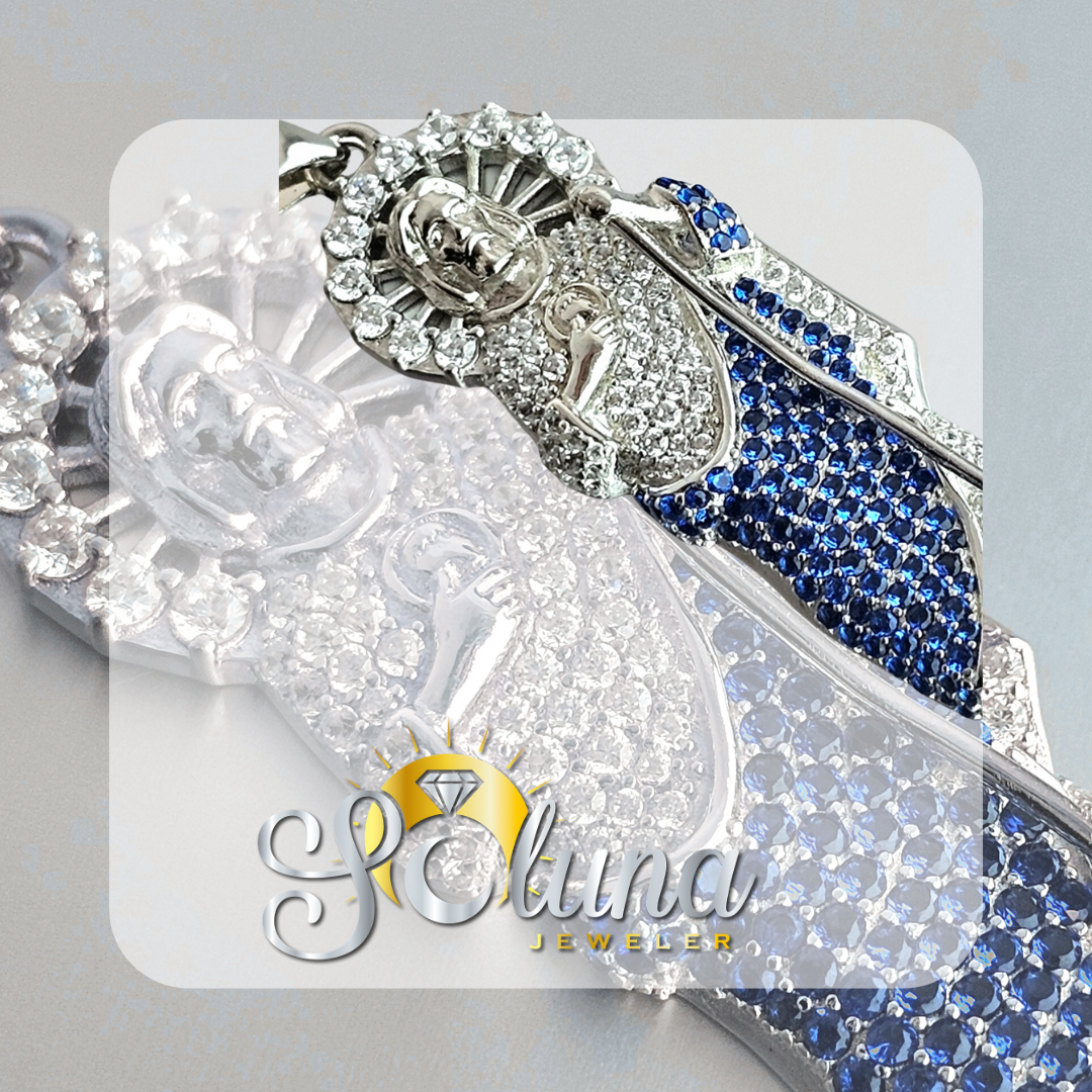 Diseño con circonitas azules y blancas.