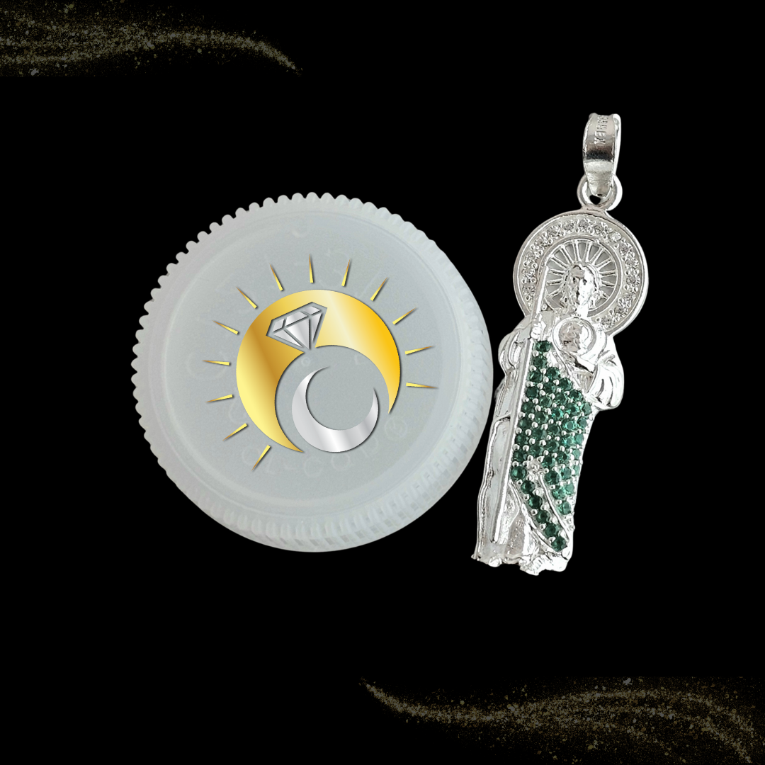 Llévalo cerca de tu corazón como símbolo de fe, fuerza y guía espiritual. Decorado con finas circonitas verdes y blancas. (varios tamaños)